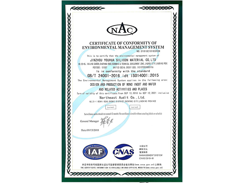 環(huán)境管理體系認(rèn)証証明書(英語)