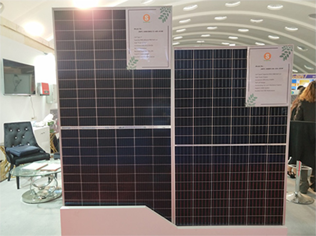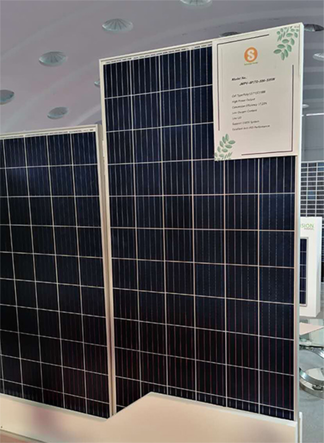 此次展會(huì),陽(yáng)光能源品牌展出三款組件,分別為單晶雙玻半片9BB-410W組件、單晶常規(guī)半片5BB-330W組件、多晶72片330W組件和多晶60片275W組件,其中,多晶275W和330W組件由于性價(jià)比高,在當(dāng)?shù)厮孟到y(tǒng)和農(nóng)業(yè)項(xiàng)目中應(yīng)用廣泛,引起熱銷浪潮。另外,單晶雙玻半片9BB-410W組件也受到很多訪客的關(guān)注和咨詢。