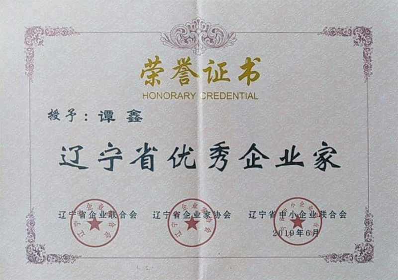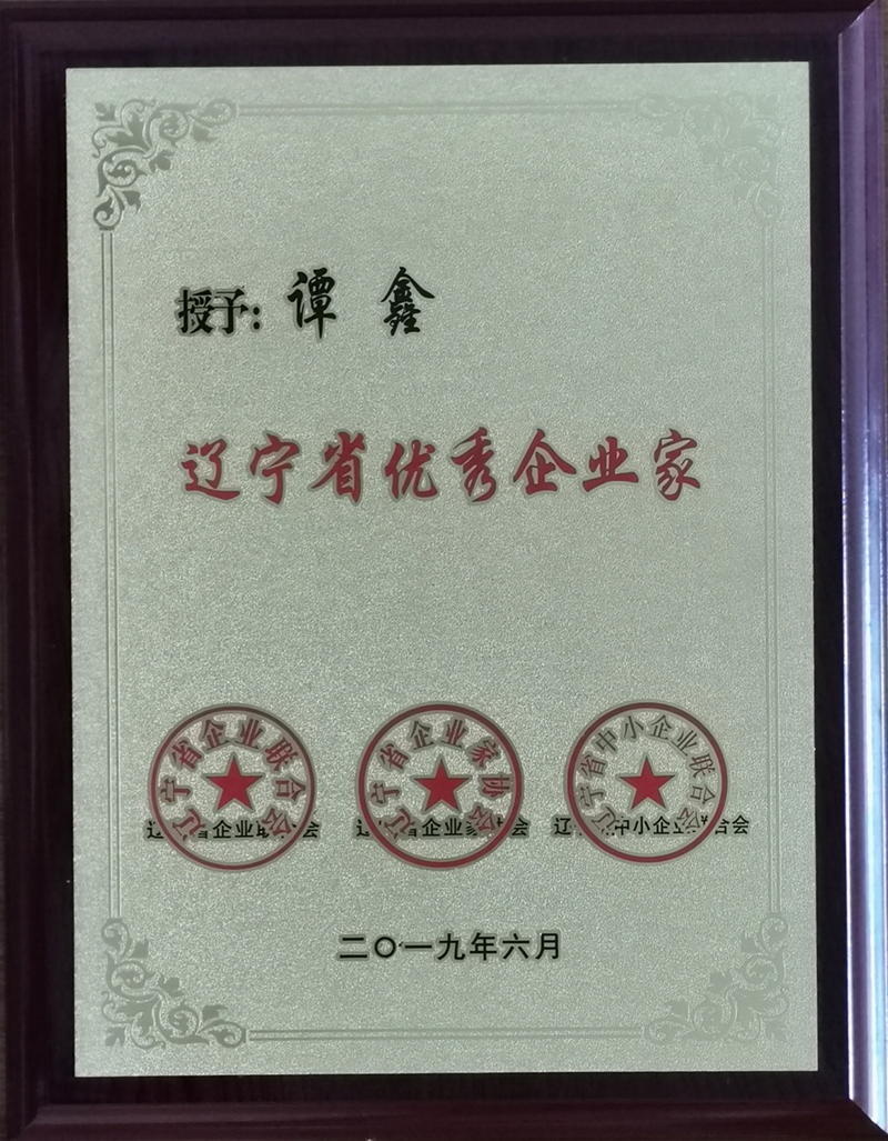 譚鑫總經(jīng)理2018年度遼寧省優(yōu)秀企業(yè)家榮譽(yù)證書(shū)