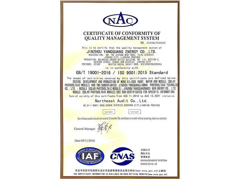 品質(zhì)管理體系認(rèn)証証明書(shū)(中國(guó)語(yǔ))