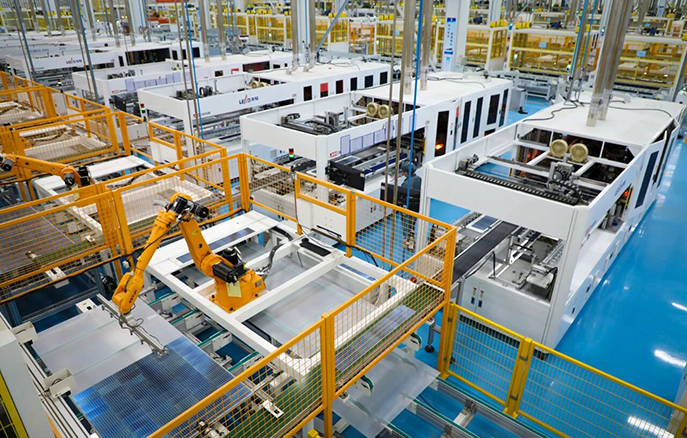 在自動(dòng)化生產(chǎn)方面,悅陽基地已全面應(yīng)用 5G 技術(shù)賦能生產(chǎn)流程。工廠擁有 11 條具備國際先進(jìn)水平的全自動(dòng)組件生產(chǎn)線,這些產(chǎn)線覆蓋了從電池片分選、焊接、疊層到層壓、裝框、測試等 20 項(xiàng)核心工序,累計(jì)部署 300 多臺(tái)智能裝備。這些智能裝備和生產(chǎn)線通過 5G 支持的工業(yè)互聯(lián)網(wǎng),實(shí)現(xiàn)了生產(chǎn)全流程的自動(dòng)化監(jiān)控和在線監(jiān)測,5G 技術(shù)的高可靠、超低時(shí)延等性能被充分利用,這不僅顯著提升了生產(chǎn)過程的穩(wěn)定性和產(chǎn)品良率,還降低了人工干預(yù)和潛在失誤,真正實(shí)現(xiàn)了從大規(guī)模標(biāo)準(zhǔn)化制造向大規(guī)模個(gè)性化“智”造的躍遷。