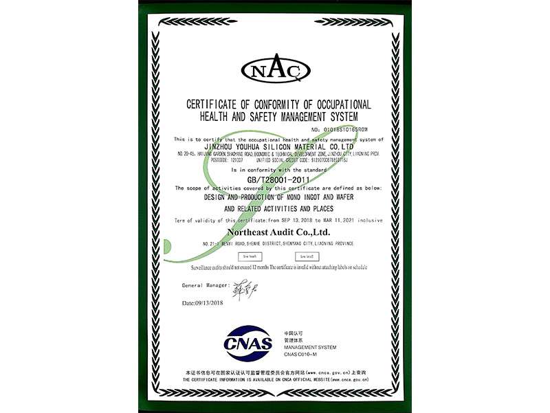 職業(yè)健康安全管理體系認(rèn)證證書(英文)