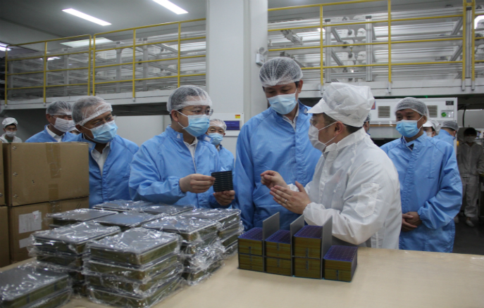 上午10時30分,市領(lǐng)導(dǎo)來到我錦州陽光能源有限公司全資子公司錦州創(chuàng)惠新能源有限公司,走進(jìn)生產(chǎn)車間現(xiàn)場瞭解企業(yè)年產(chǎn)1GW高效太陽能元件數(shù)位化車間專案相關(guān)情況。我公司總經(jīng)理張海陪同市領(lǐng)導(dǎo)一行,張總介紹:該專案達(dá)產(chǎn)後,可實現(xiàn)15億元的銷售收入,並作為東北地區(qū)領(lǐng)先智慧工廠帶動同行業(yè),完成再生能源佈局優(yōu)化和提質(zhì)增效,加快推動企業(yè)向清潔低碳模式轉(zhuǎn)變。